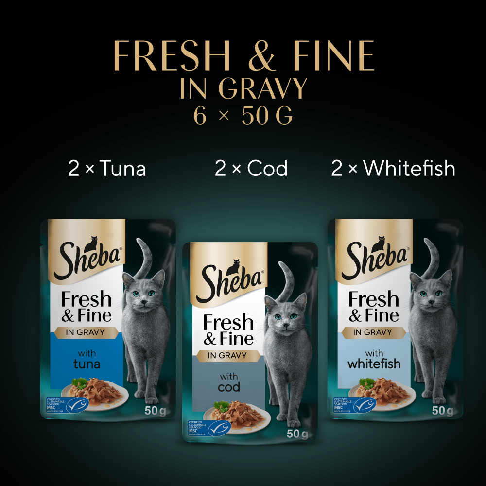 Sheba Fresh & Fine – Tuna, Cod & Fish in Gravy 6 x 50g