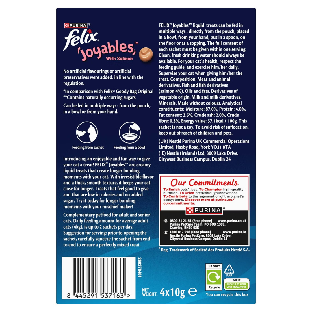 Indulge your cat with the irresistible flavour and smooth, thick texture of FELIX Joyables. These creamy liquid treats are designed to create longer bonding moments. Low in calories and with no added sugar, they are a delightful and guilt-free way to connect with your cat. Try FELIX Joyables today for extended moments of shared joy.