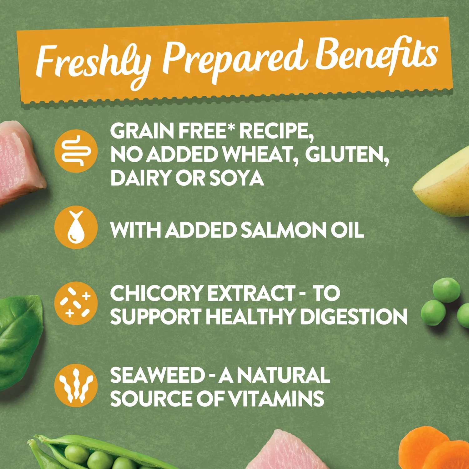 Harringtons tray-cooked dinners offer a delightful and healthy diet for dogs. Natural, wholesome ingredients are combined with added vitamins and minerals for a nutritionally balanced meal. A grain-free recipe ensures suitability for dogs with sensitive digestion. Freshly prepared meat, gently cooked using the unique FreshCook process, locks in nutrition and flavour. Complete, natural, and utterly delicious, these dinners contain no artificial additives. The hypoallergenic recipe is easy to digest and free from wheat, dairy, soya, and pork. Pre-biotics support gut health, and salmon oil promotes a healthy skin and coat, providing comprehensive care.