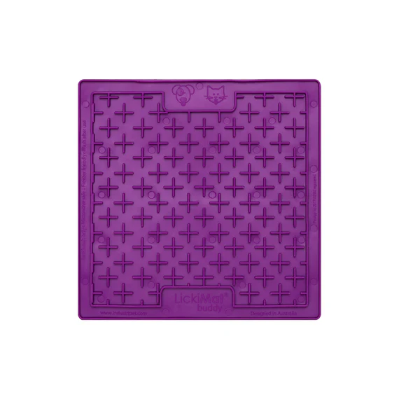 The LickiMat helps reduce anxiety, boredom, and destructive behavior by calming your pet through the natural act of licking, which releases endorphins. Perfect for dogs and cats, it’s ideal during stressful times like vet visits, grooming, thunderstorms, or when left alone. The textured surface works with a wide range of foods and treats—peanut butter, yogurt, spreads, raw, wet, or dry meals—while promoting slower eating, better digestion, and fresher breath. It can replace traditional bowls for cats and small to medium dogs, and even be frozen for longer-lasting enjoyment. Available in different designs, including the Buddy style with its cross maze pattern, the LickiMat turns treat time into a healthier, more engaging activity.