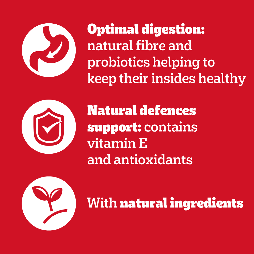 - OPTIMAL DIGESTION: contains natural fibres and prebiotics helping to keep their insides healthy.