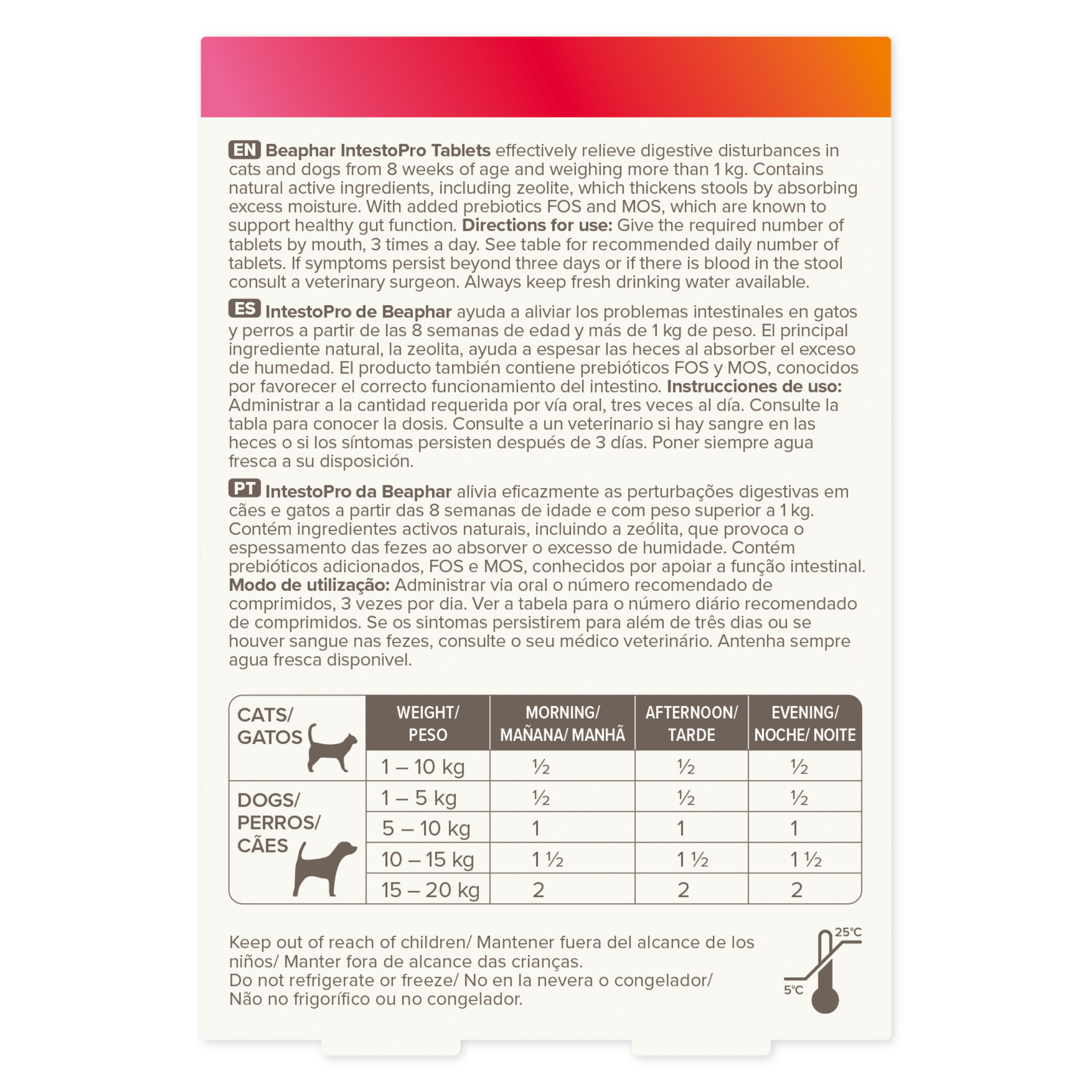 Beaphar IntestoPro Prebiotic Stool Firming Tablets are specially formulated to help support healthy digestion and firm loose stools in cats and small dogs weighing between 1 kg and 20 kg. Each chewable tablet combines natural active ingredients — including zeolite, a mineral clay that helps absorb excess moisture, and prebiotics (MOS and FOS) that nourish beneficial gut bacteria — to help support regular bowel function and overall gut health. These tasty tablets are easy to administer straight from the hand or mixed with food, making them ideal for pets that struggle with temporary digestive upsets caused by stress, dietary changes or mild stomach irritation. Gentle yet effective, these tablets help promote comfort and wellbeing for your small dog or cat.