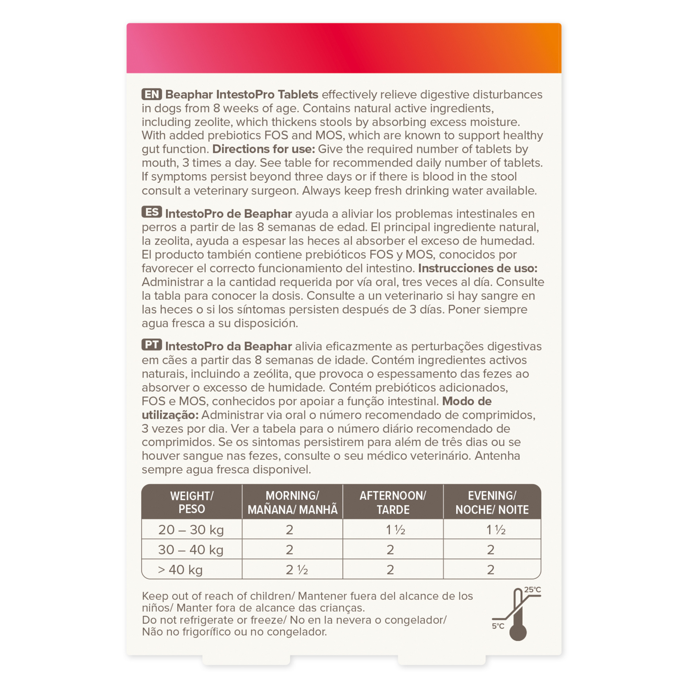 Beaphar IntestoPro Prebiotic Stool Firming Tablets are specially formulated to help relieve digestive upsets and firm loose stools in medium and large dogs weighing over 20 kg. Each easy-to-give tablet contains natural active ingredients, including zeolite — a natural clay that absorbs excess moisture to help thicken and normalise bowel movements. Added prebiotics (MOS and FOS) support healthy gut function by promoting beneficial intestinal flora. Simple to administer directly by mouth, these tablets are ideal for use during temporary digestive disturbances caused by stress, changes in diet, worming treatment or eating inappropriate food. Suitable for dogs from around 8 weeks old and over 20 kg, this supplement helps support your dog’s comfort and digestive wellbeing.