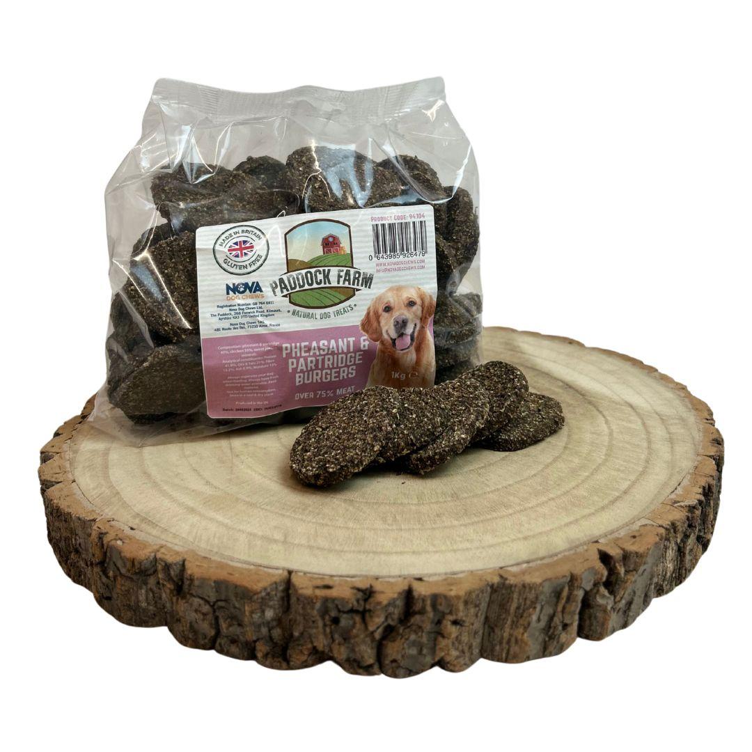 Treat your dog to a delicious and nutritious selection of Nova Dog Chews Natural Burgers, available in Rabbit, Pheasant & Partridge, and Venison flavours. These wholesome, high-protein burgers are made with quality meat sources blended with chicken, sweet potato, and essential minerals to create a tasty and balanced treat your dog will love. Naturally lean and highly digestible, each flavour provides valuable nutrients such as B-vitamins, iron, zinc, and omega fatty acids to help support energy levels, muscle maintenance, immune health, and overall wellbeing. Free from artificial additives and fillers, these versatile burgers are perfect for use as treats, training rewards, meal toppers, or part of a raw or natural feeding routine, making them suitable for dogs of all breeds and sizes.