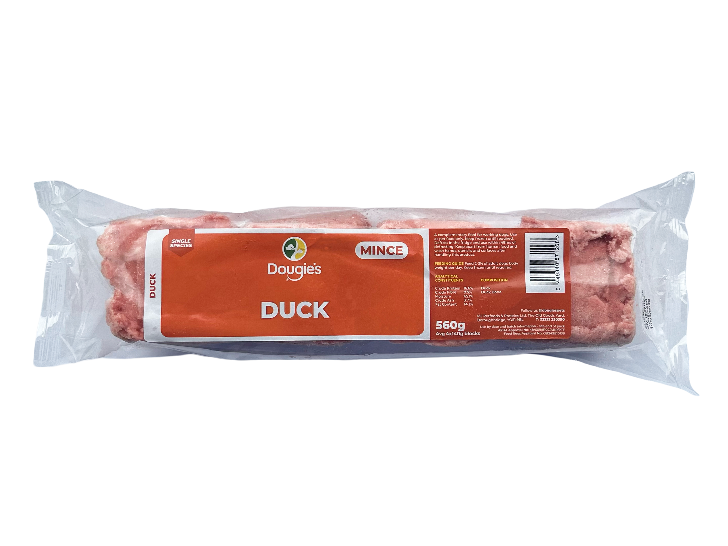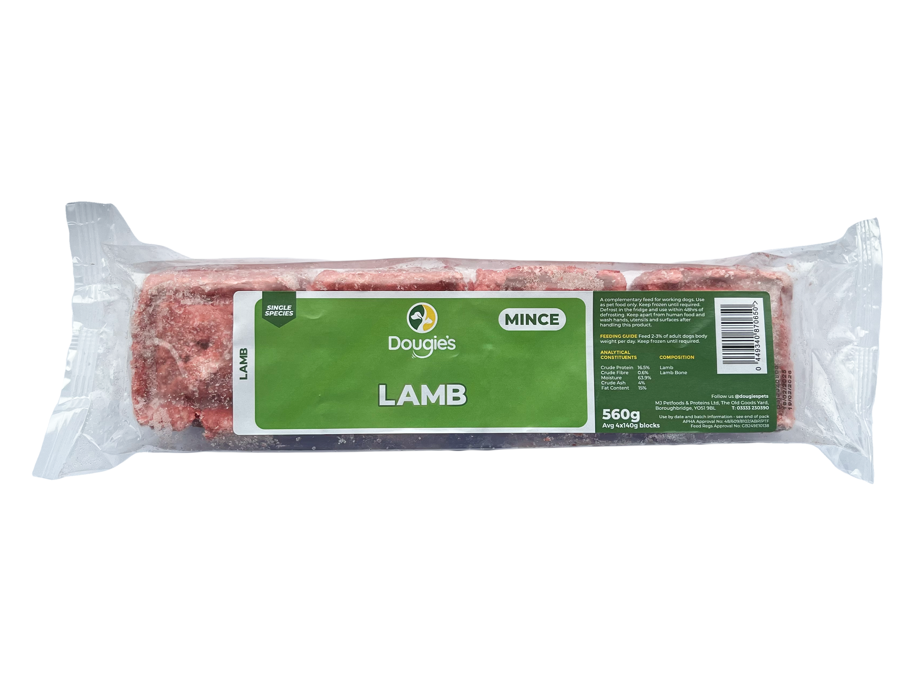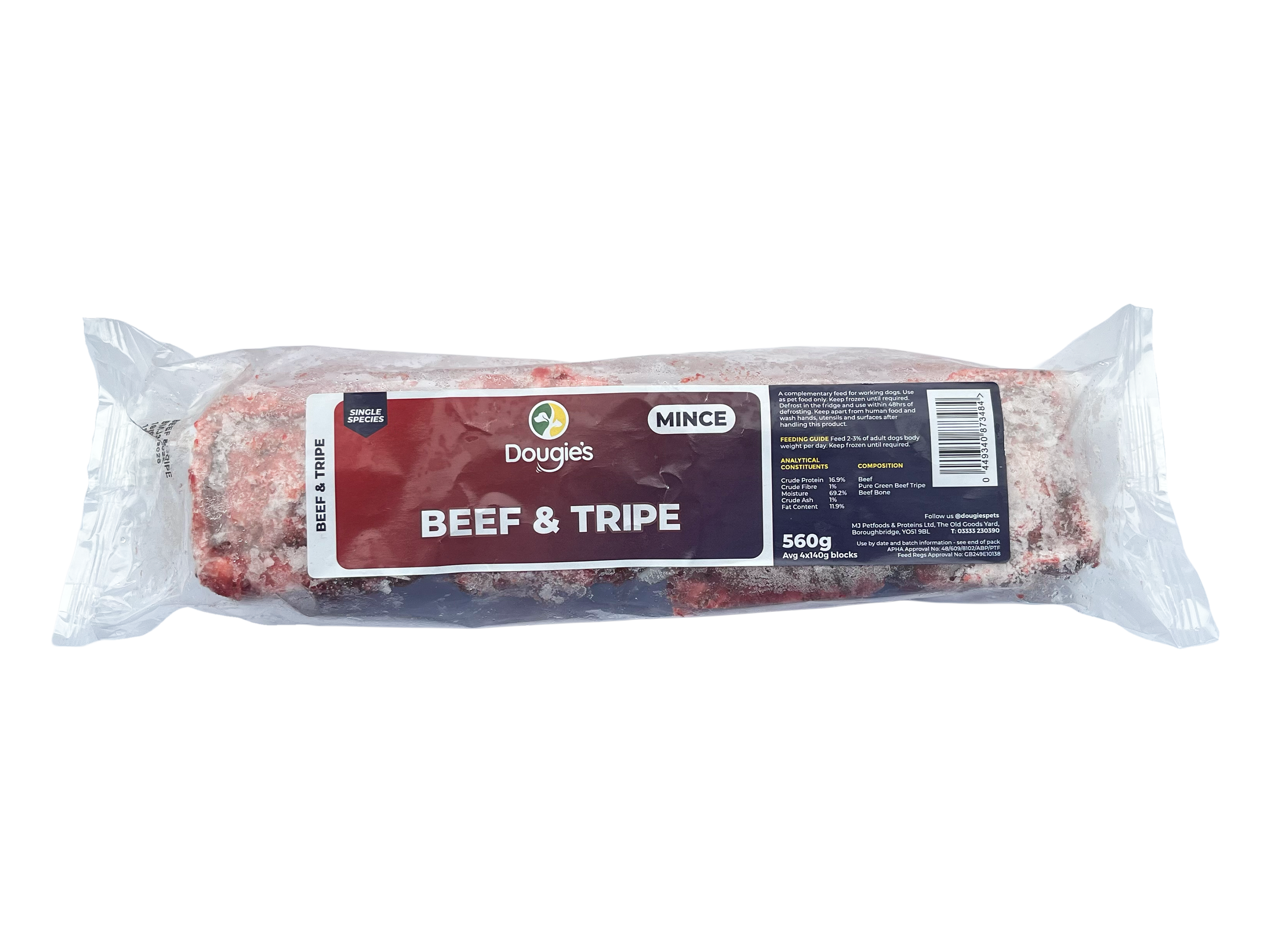 The mince is conveniently packed in 520g - 560g packs containing four easy-portion blocks, allowing you to defrost only what you need. Whether you’re new to raw feeding or experienced with BARF diets, Dougie’s Straight Mince offers a natural, nutritious base for your dog’s meals.