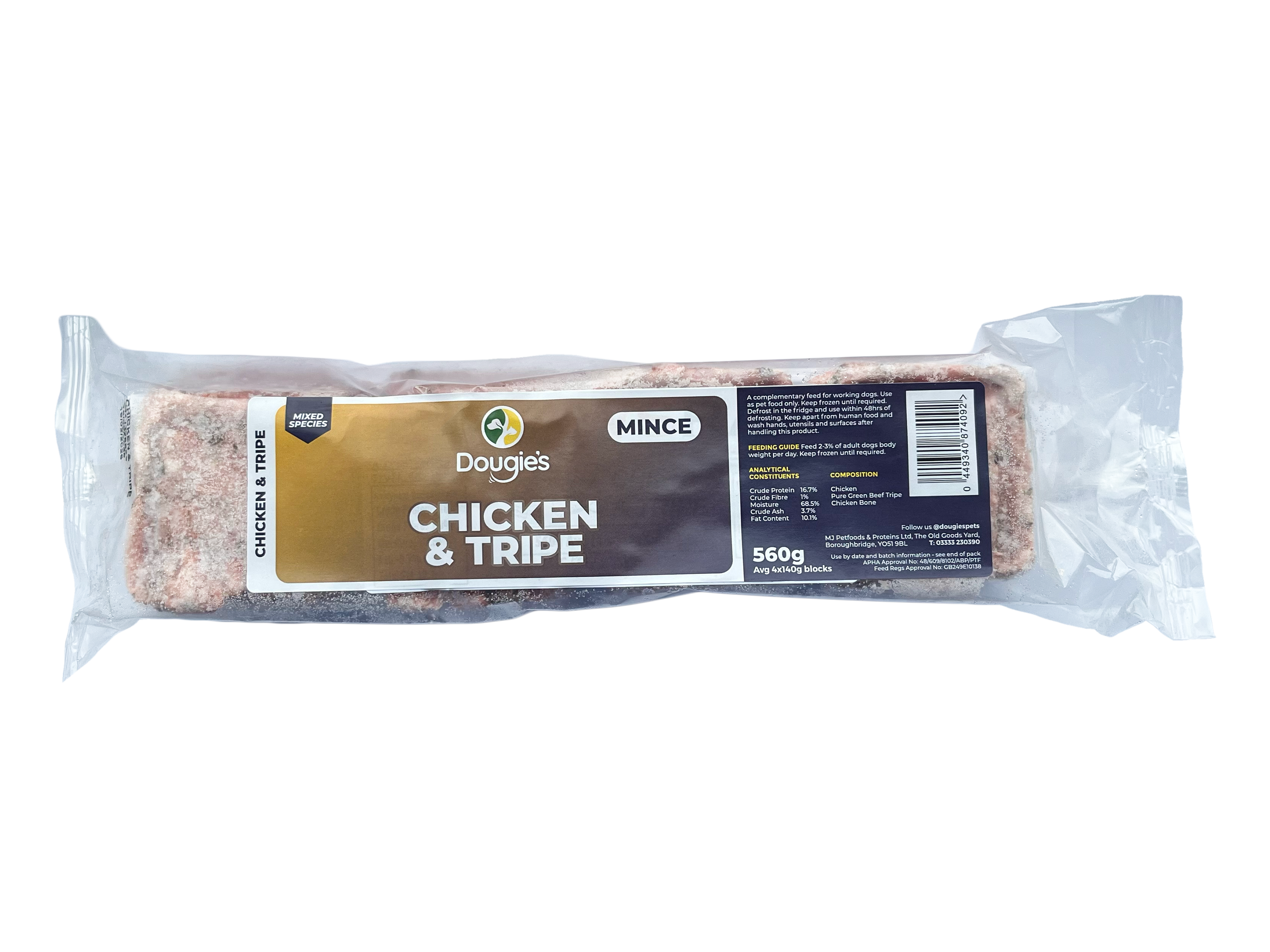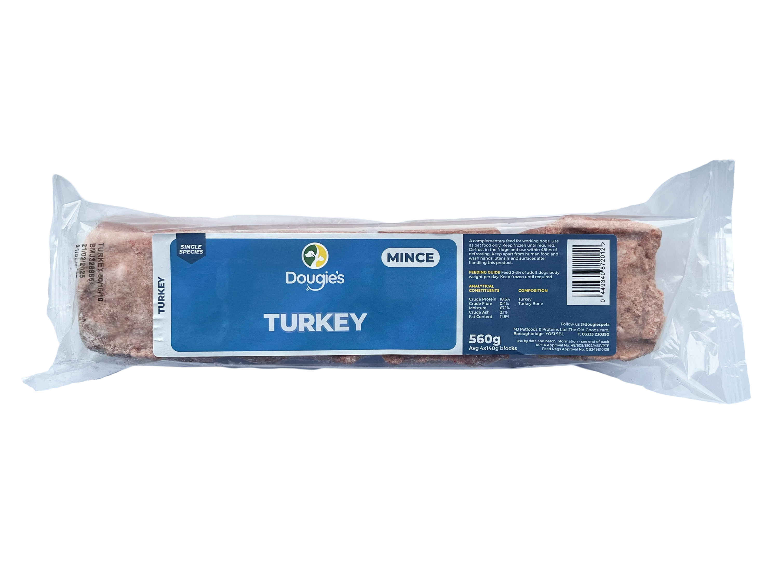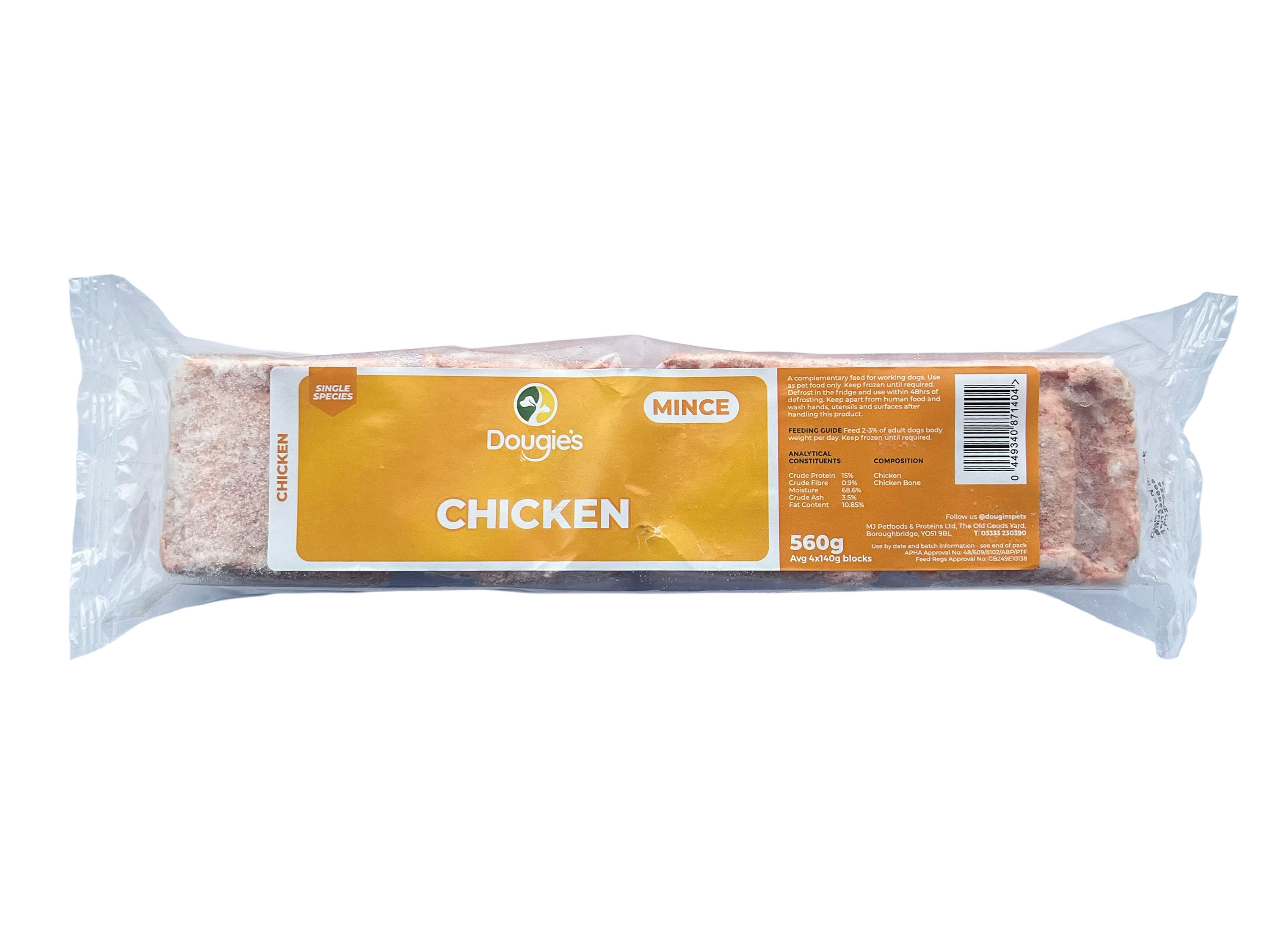 The mince is conveniently packed in 520g - 560g packs containing four easy-portion blocks, allowing you to defrost only what you need. Whether you’re new to raw feeding or experienced with BARF diets, Dougie’s Straight Mince offers a natural, nutritious base for your dog’s meals.