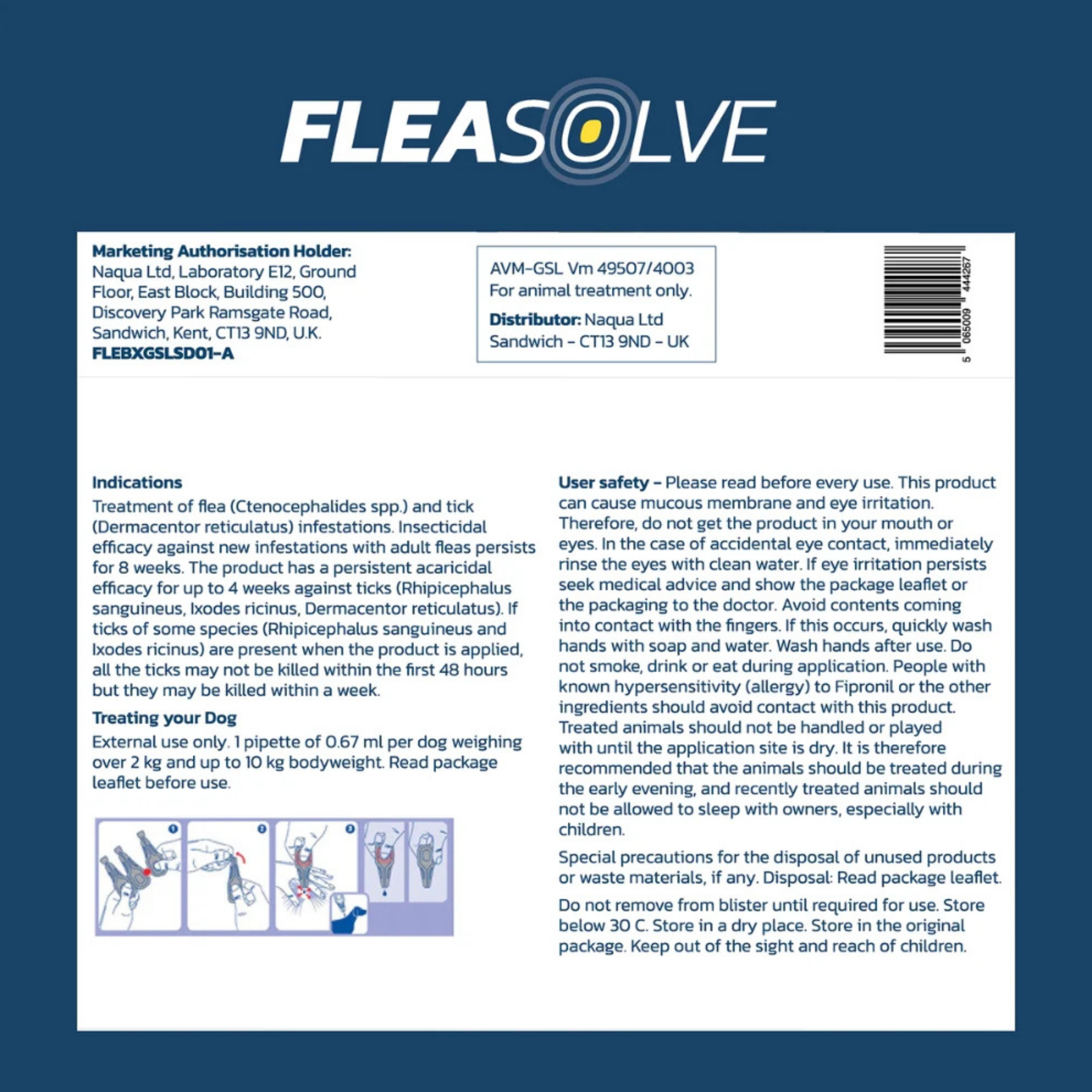 Help keep your small dog comfortable and protected with Fleasolve Spot-On Small Dog Flea Treatment, a fast-acting, vet-strength topical solution designed for dogs weighing approximately 2 kg – 10 kg. This easy-to-apply spot-on treatment contains a potent veterinary-grade active ingredient — fipronil — which works quickly to eliminate and protect against fleas and ticks for up to 4 weeks per application. Supplied in convenient pipettes, it’s ideal for monthly use to help prevent infestations and reduce itching and discomfort, all without needing a prescription. Fleasolve spreads through your dog’s coat to target pests where they live and breed, helping you keep both your dog and home flea-free.