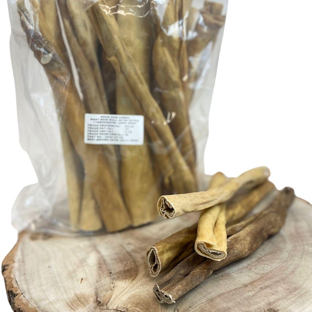 Give your dog a delicious, wholesome treat with the 30 cm Goat Skin Roll Dog Chew from Nova Dog Chews. Made from 100 % natural goat skin and gently air-dried to preserve its flavour and nutritional quality, this single-ingredient chew is a nutritious and satisfying snack that dogs instinctively love.