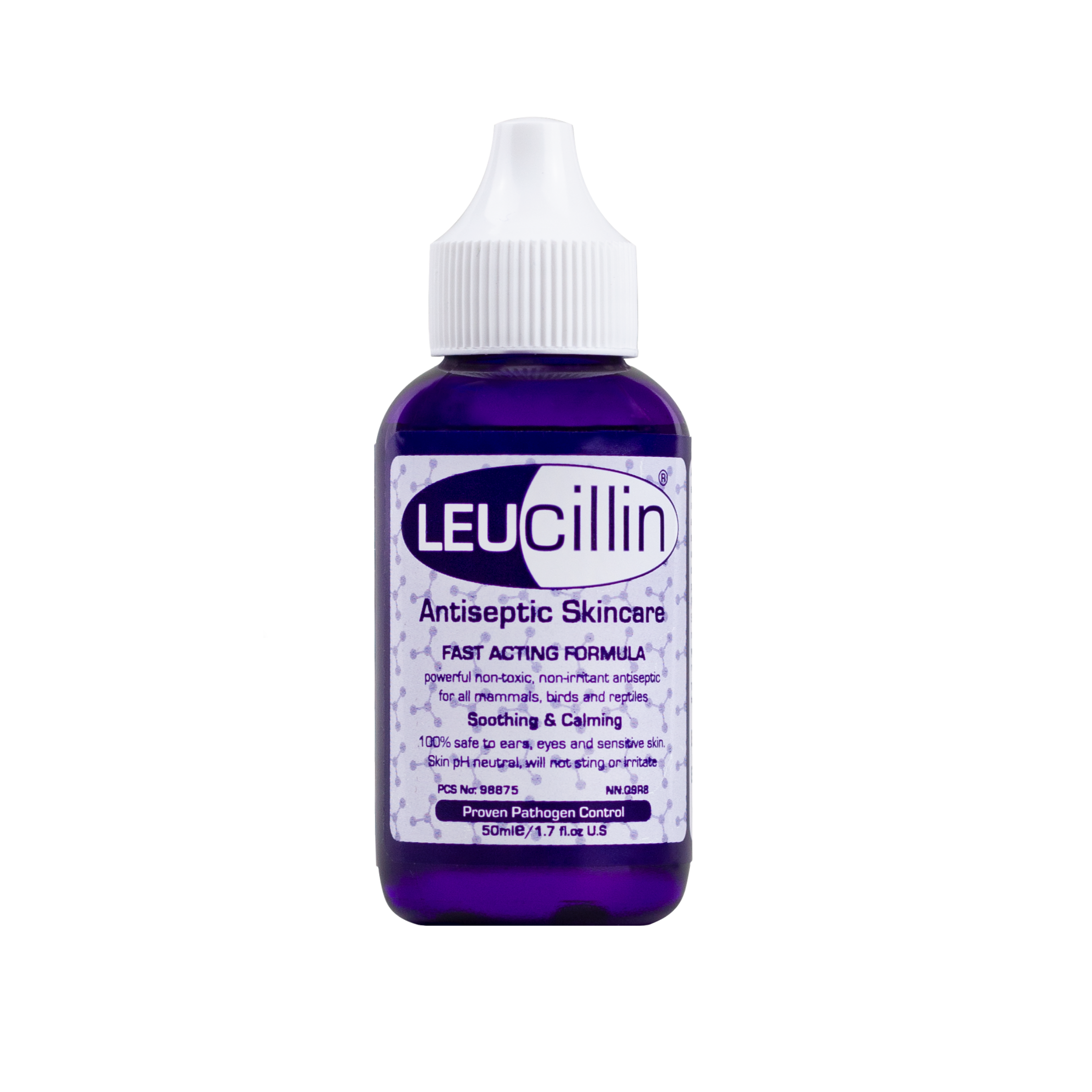 Leucillin is a fast-acting antiseptic skincare spray/solution for animals, designed to help manage minor wounds, cuts, grazes and common skin problems. The formula is anti-bacterial, anti-viral and anti-fungal, while remaining skin pH neutral, non-toxic and non-irritant, making it suitable for sensitive skin and regular use. It works by using hypochlorous (HOCl)—a naturally occurring substance produced by white blood cells—to destroy germs on contact and support the skin’s natural healing process.