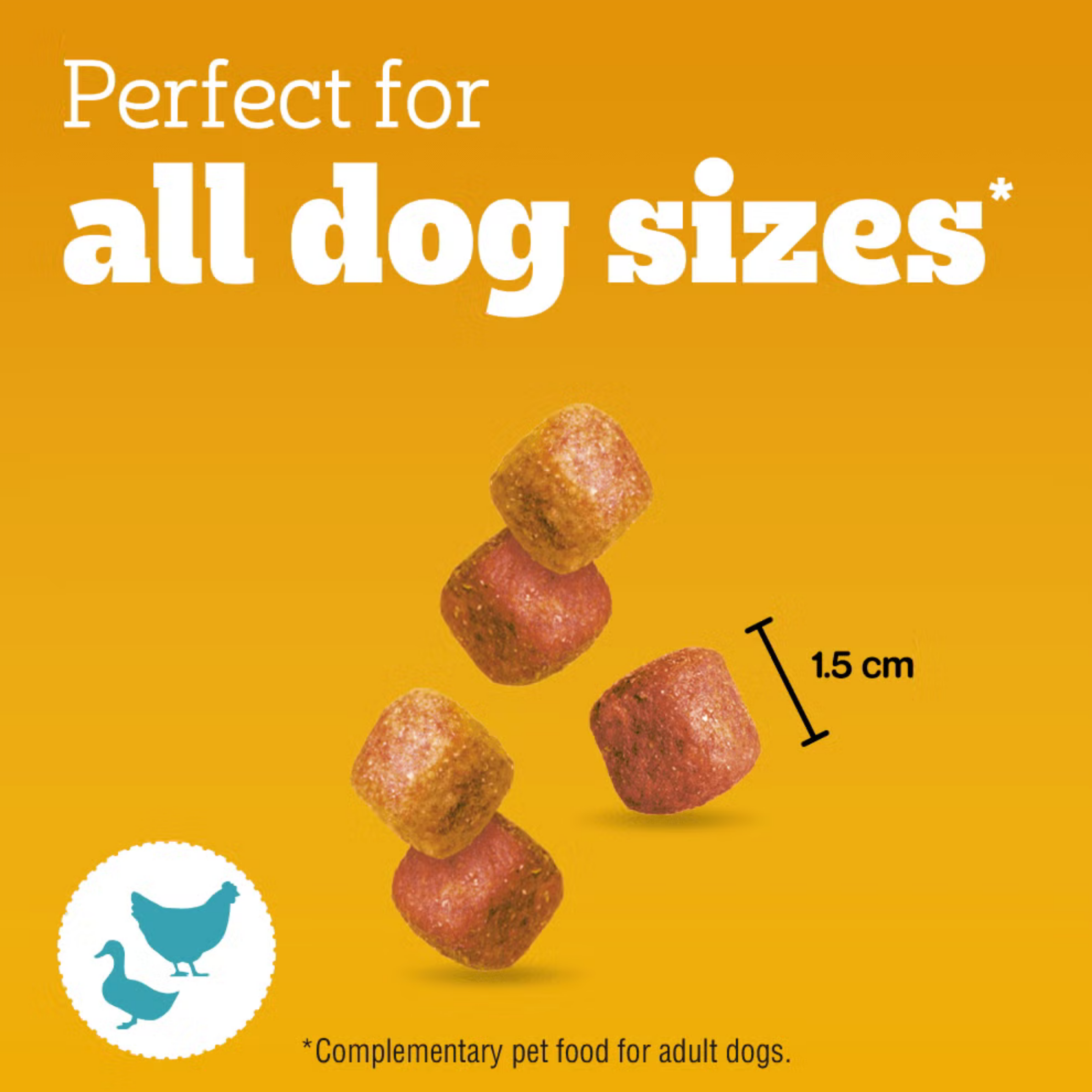 Pedigree Tasty Minis Adult Dog Treats Chicken & Duck Chewy Cubes (130g) are delicious, soft and chewy treats designed to make everyday rewards even more enjoyable for adult dogs. Featuring a tasty combination of chicken and duck flavour, these bite-sized cubes are perfect for training sessions, positive reinforcement or simply showing extra love between meals. Carefully formulated without artificial colours or flavours, these complementary treats are easy to break into smaller pieces, making them ideal for dogs of all sizes. Whether you’re teaching new tricks or rewarding good behaviour, these chewy cubes are a tasty and trustworthy choice.