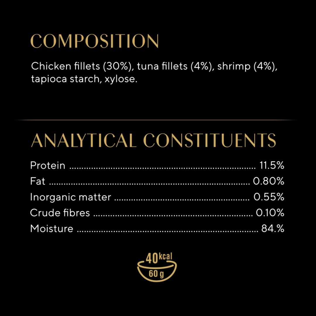 SHEBA® wet cat food is a medley of carefully selected, tender fillets served in a rich and delicious gravy — an enticing recipe designed to satisfy with textures your cat will adore. Made with natural* and high-quality ingredients, it provides a 100% complete and balanced everyday meal to keep your feline companion healthy and happy. Each 85g recyclable tray is easy to open and serve, offering the irresistible taste of Chicken, Shrimp, and Ocean Fish in every portion. With no added artificial colourants or preservatives, and developed alongside expert nutritionists at the Waltham Petcare Science Institute, this premium cat food combines taste, nutrition, and convenience in every serving.