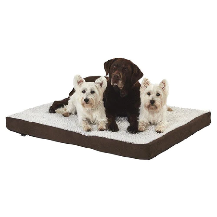 Available in a range of sizes to suit dogs of all breeds, this ultra-soft dog mattress is designed to offer both comfort and support. Filled with high-density foam, it helps promote healthy bones and joints while providing excellent back support. The plush surface ensures a luxurious resting spot that pets will love to return to. For added convenience, the zip-off cover is machine washable, making it easy to keep clean. Available in two stylish colours—cream or brown—to complement any home décor.